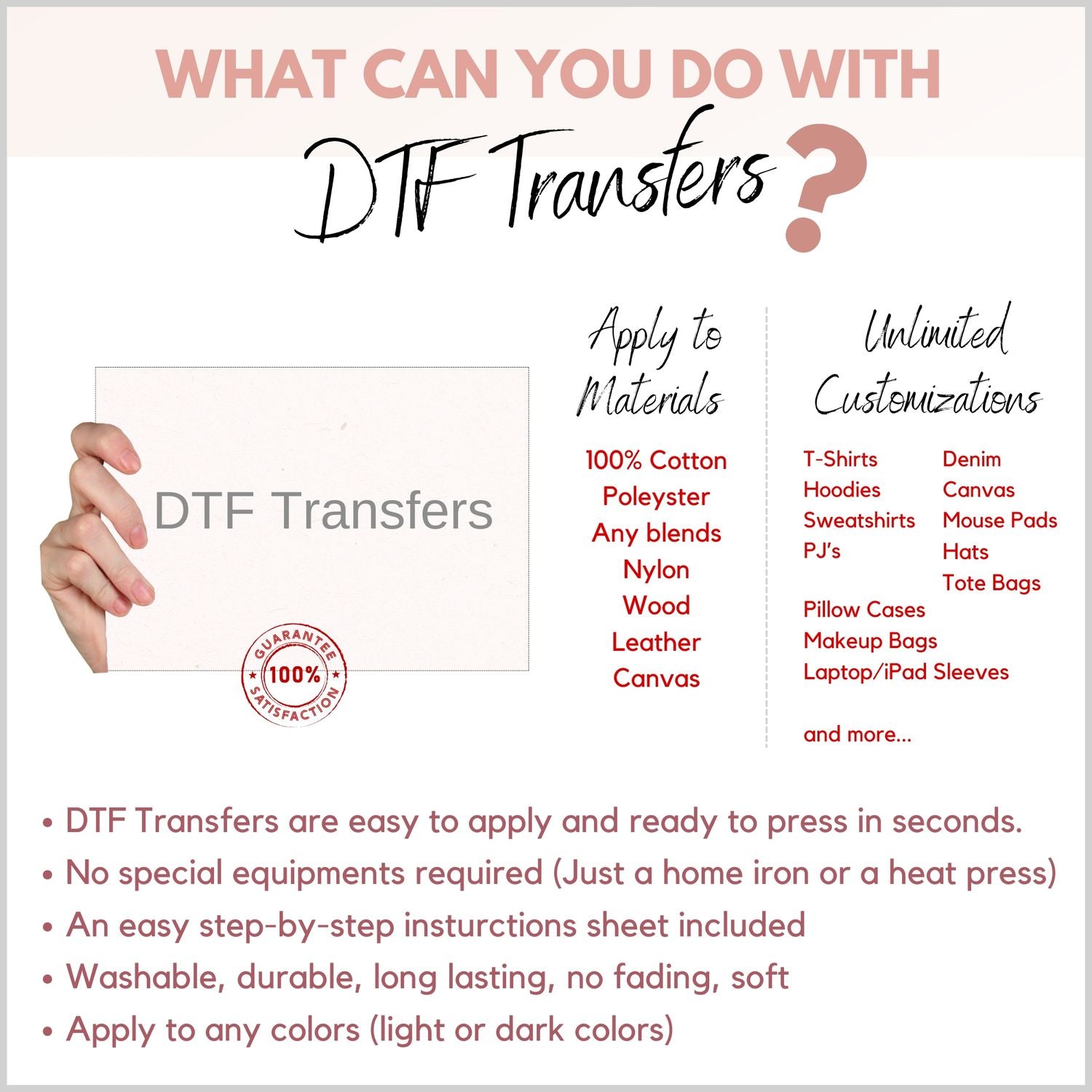 Simply provide your personalization in the design, and we’ll ship you a high-quality, durable Direct to Film (DTF) transfer that’s incredibly easy to apply.